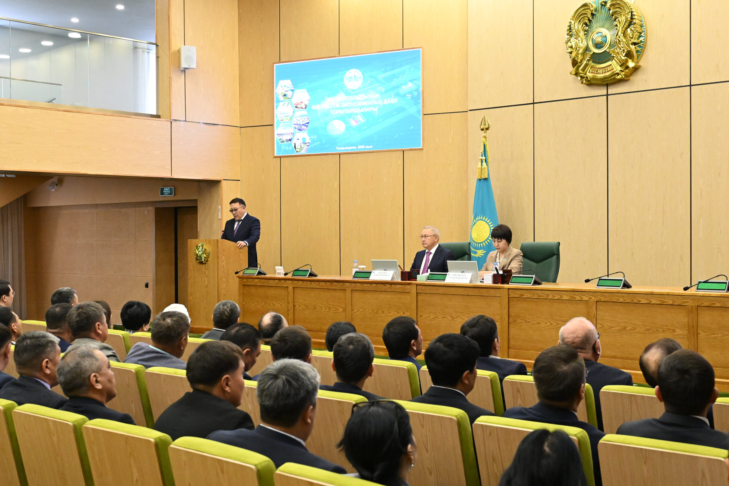 Сол сияқты өңірдің даму қорытындылары жайлы баяндап, облыс құрылғаннан бергі қол жеткізген негізгі экономикалық көрсеткіштер мен басым бағыттарға тоқталды. Соның ішінде өндірісті дамыту, агроөнеркәсіпті өркендету, газдандыру, жол құрылысы, әлеуметтік саланы ілгерілету, басқа да бағыттардағы маңызды жобалар жайлы айтты.