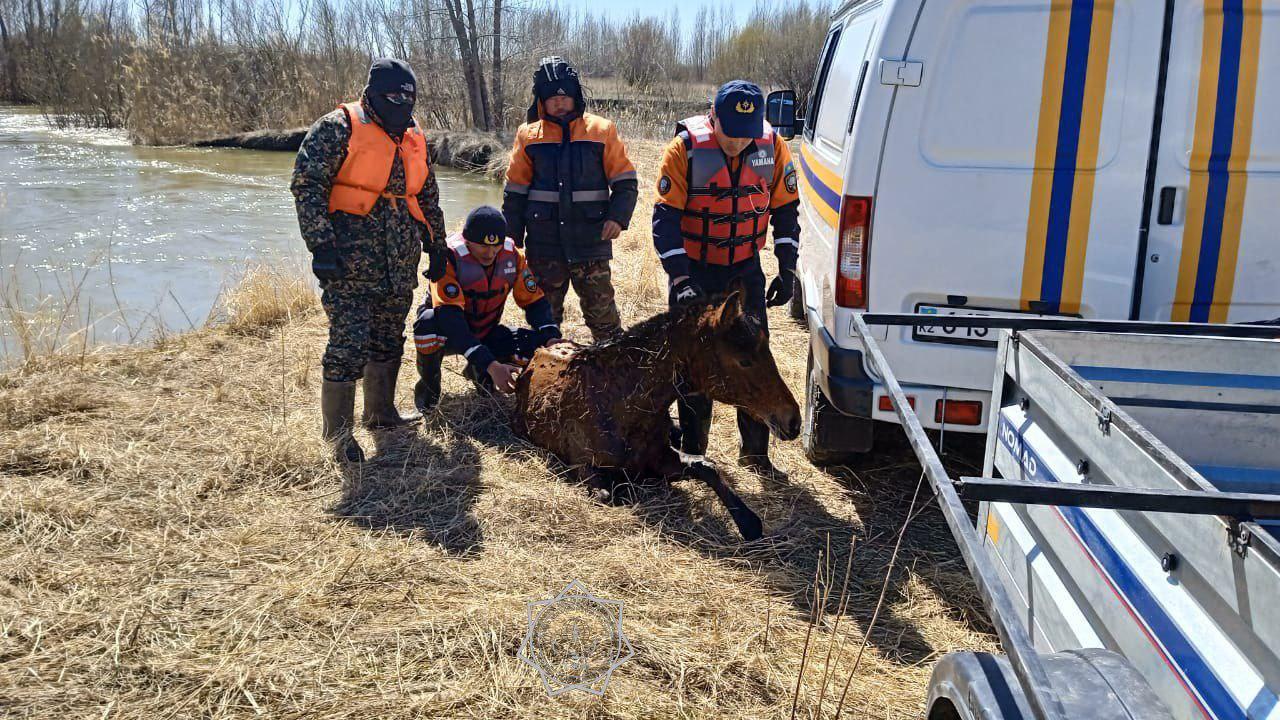 • Ақтөбе облысы: Өзендегі жұқа мұздың астына түсіп кеткен жылқыны құтқару үшін мамандар 3 сағат бойы суық сумен арпалысты. Көлік бара алмайтын жер болғандықтан, құтқарушылар оқиға орнына жаяу жетіп, мұзды жарып жол салды.