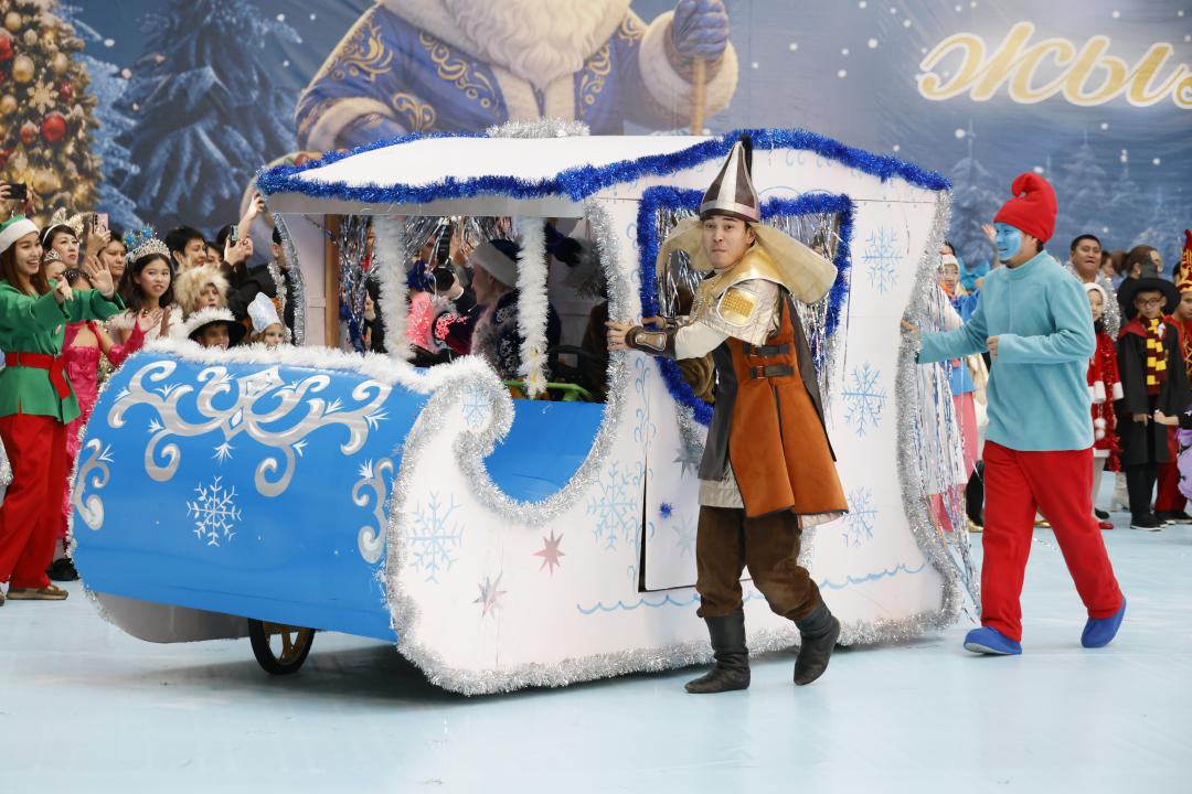 Мерекелік шара барысында Аяз ата мен Ақшақар балалар үшін жаңа жылдық шыршаны жарқырата жақты. Цирк әртістері, аниматорлар, қазақ халық ертегілері мен мультфильм кейіпкерлері өнер көрсетіп, мерекеге ерекше рең берді.