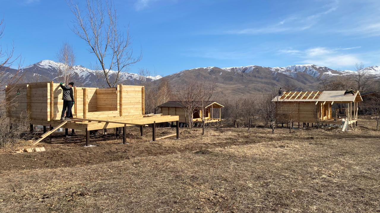 – Көріп тұрғандарыңыздай, бұл жер өте әсем, табиғаты ерекше. Болашақта 30, мүмкін 50-ге жуық коттедж салу жоспарымызда бар. Біз шамамен 2 шақырымға созылатын коммуникация желілерін жүргіздік: электр қуаты, су жүйесі және кәріз желісі тартылды. Экоүйлер толықтай ағаштан салынған, сондықтан экологиялық тұрғыдан өте таза. Нысан «Весёлая Поляна» деп аталатын жерде, бірінші және екінші кордонның ортасында орналасқан. Теңіз деңгейінен 1200 метр биіктікте тұр. Бұл аумақта спорттық шаралар өткізуге, жаттығулар жасауға өте қолайлы, – дейді ол.