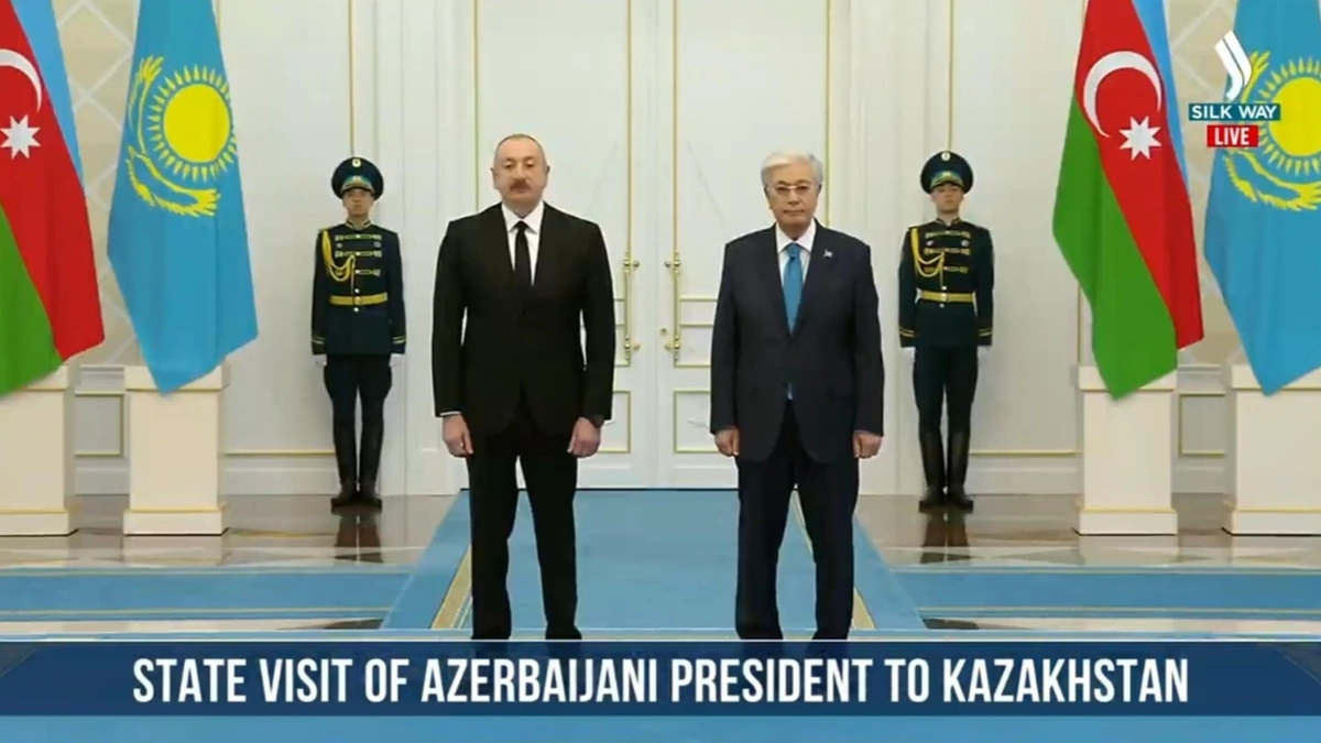 Ақордада Мемлекет басшысы Қасым-Жомарт Тоқаев елімізге мемлекеттік сапармен келген Әзербайжан Президенті Ильхам Әлиевті қарсы алды. Алдымен Қасым-Жомарт Тоқаев пен Ильхам Әлиев бір-біріне ресми делегация мүшелерін таныстырды.