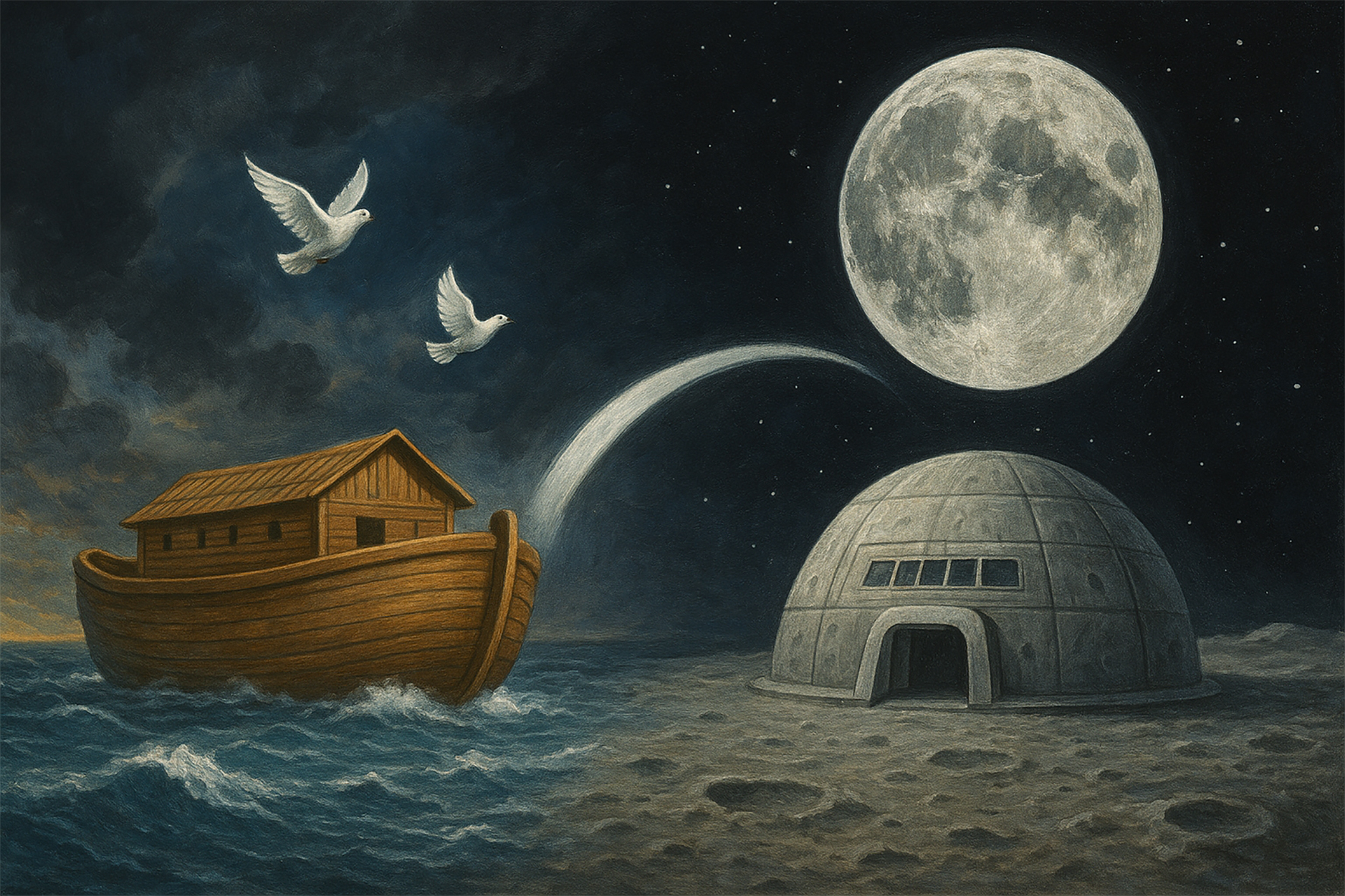 Әлденеше миллиондаған, бәлкім, бірнеше миллиард жылдан кейін Күн жүйесіндегі, демек, Жер бетіндегі тіршіліктің де тоқтап, ақырзаман тәрізді құбылыстың бой көрсететіні – ғылыми дәлелденген жайт. Сондай кезеңнің қарсаңында адамзат баласына Жер бесігінен шығып, тіршілікке қолайлы басқа жүйе, ғаламшар іздеуіне, сол мақсатпен алып ғарыш кемесін жасауына тура келеді. Өз кезегінде Ай қадым замандарда нақ осындай мақсатпен жасалған өзіндік бір Нұқ кемесі деген болжам да ойға оралады. Өзге бір әлемде пайда болған дамыған өркениет өкілдерінің, яғни адамзат баласының бір заманда Жер бетіне осы Ай тәрізді алып «кемемен» келіп жетуі де мүмкін ғой… Тылсымына адам санасы бойлай бермейтін жаһан жұмбақтарын еске алғанда бұл нұсқаны да жоққа шығаруға болмайды.