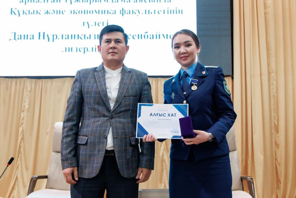 Кездесуді әлеуметтік жұмыс және жастар саясаты жөніндегі проректор Болат Сериев жүргізіп, Дана Нұрланқызы елімізге танымал жас прокурор, Жетісу университетінің түлегі екенін атап өтті.