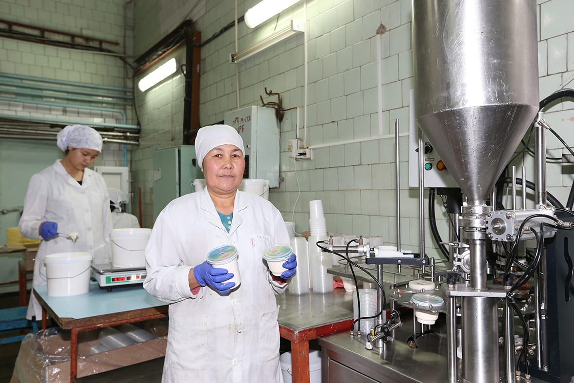 Макет Ниязбеков басқаратын «Үштөбе-Айдын» ЖШС-і күніне отыз тоннаға жуық сүт қабылдайды. Жаз мезгілінде одан да жоғары көрсеткішке қол жеткізеді. Шебер-технолог Толқын Болысбекованың айтуынша қыс мезгілінде сүттің мөлшері аз болғанымен сапасы жағынан жоғары. Зауыт сүт өнімінің оннан аса түрін шығарады.
