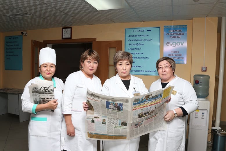 Ауруханада ұзақ жылдардан еңбек етіп келе жатқан білікті көз дәрігері, зейнет демалысында жүрсе де маманның тапшылығынан жұмысынан қол үзбеген Кәрібай Нұрқалиевтің жұмыс бөлмесінде болдық. Журналистер көз дәрігерінің ісіне ризашылықтарын білдірді. Емханадағы күндізгі бөлімнің жұмысы да уақытқа лайық. Тіс дәрігері Нұрболат Балтабаев пен жас маман Мейрамбек Шорықовтың да еңбектері елеулі.