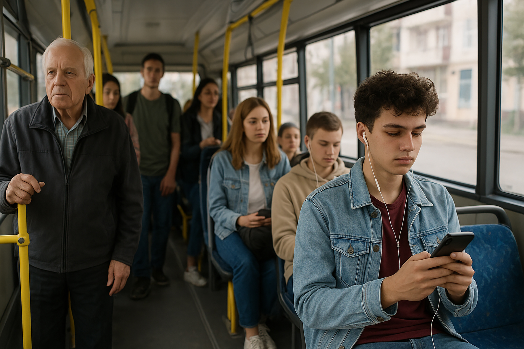 Қоғамдық көліктің есігі ашылғанда жапа-тармағай кірген жастар орындыққа іркес-тіркес жайғасып, өз әлеміне сүңгіп кетеді. Бірі телефон шұқылап, екіншісі құлағына құлаққап тағып, ендігісі терезеден сыртқа үнсіз көз тастайды. Ал келесі аялдамадан мінген ата-әжелеріміздің жанарынан үміт ұшқыны жылт етіп, «Біреу орнын берер ме екен?» деген әлсіз ой тұрады. Өкініштісі, үміттің оты лезде сөнеді. Өйткені орын беретін, үлкенді сыйлайтын адамгершілік деген қасиетті сезім бүгінде сиреп барады.