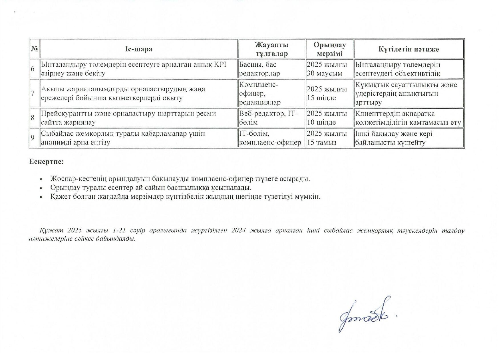 • Комплаенс қызметі